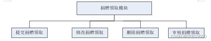 校园爱心捐赠与物品交换平台最重要的一个功能就是捐赠领取,其模块功能结构,具体的结构图如下: