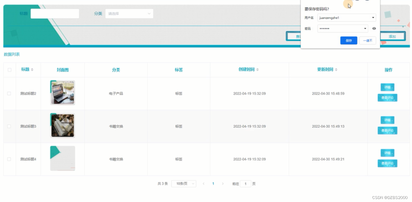管理员可以对系统前台展示的轮播图以及公告进行增伤改查,方便用户进行查看,界面如下图4-13所示。
