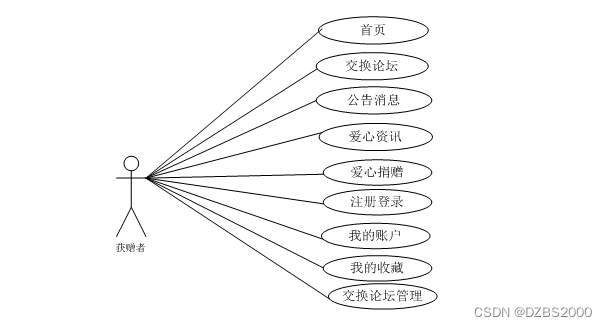 图2-1 校园爱心捐赠与物品交换平台获赠者角色用例图