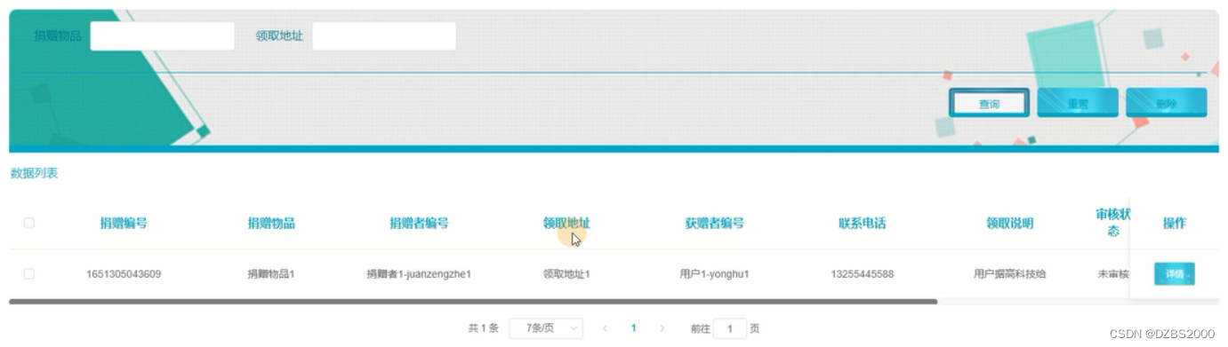 (3)捐赠领取:点击“捐赠领取”按钮会显示出用户提交的领取信息,支持对捐赠领取信息进行审核回复操作。