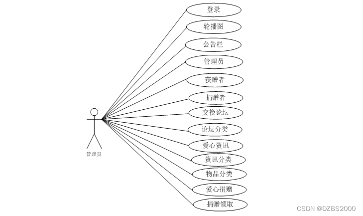 图2-3 校园爱心捐赠与物品交换平台管理员角色用例图