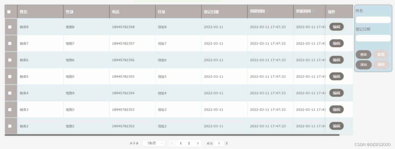 (7)陌生人员登记:点击“陌生人员登记”这一按钮后会显示出所有的陌生人员的登记信息,并且支持增删改查操作,;