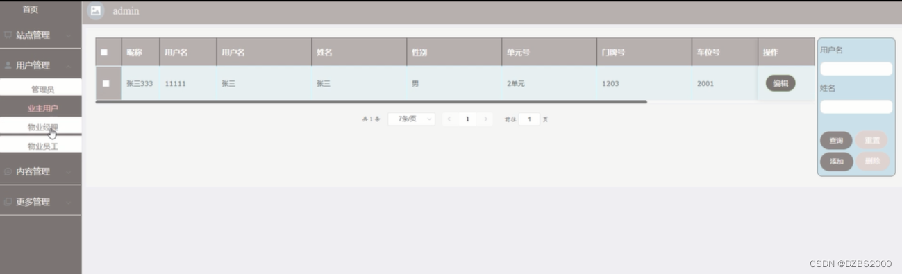 (1)业主用户:管理员、物业经理和物业员工在后台都可以查看到业主的信息,但是只有管理员可以对业主进行增删改查操作;
