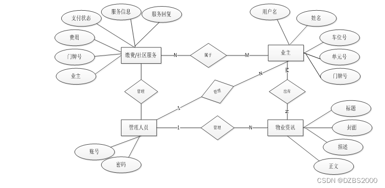 下面是整个物业管理系统中主要的数据库表总E-R实体关系图。