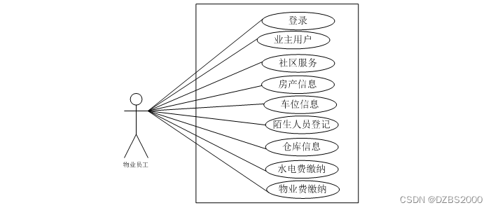 物业管理系统中物业员工角色用例图如图2.4所示: