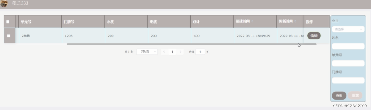 | 查询业主信息功能测试 | 查询成功的情况 | 菜单栏中点击用户管理菜单下的子菜单业主用户,输入入用户名或者姓名对业主用户进行查询 | 查询成功 | 正确 |