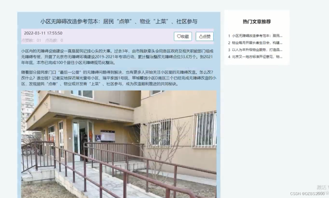 当访客点击物业管理系统中导航栏上的“物业资讯”后将会进入到该“物业资讯”列表的界面,然后选择想要看的物业资讯,点击进入到详细界面,物业资讯界面如下图4.4 所示。