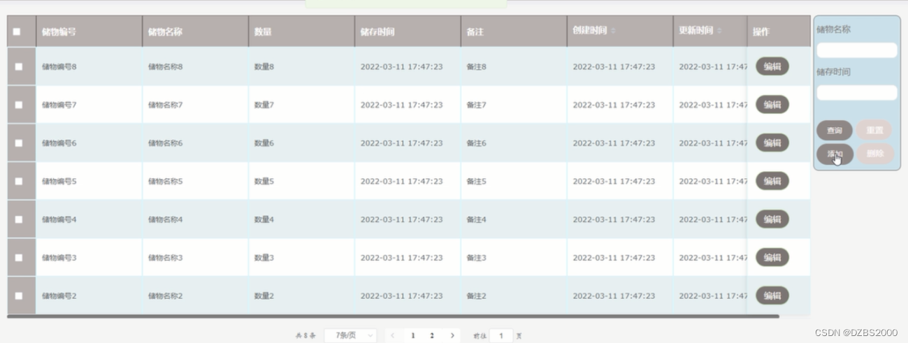 (8)仓库信息:点击“仓库信息”这一按钮后会显示出所有的仓库储物信息,并且支持增删改查操作,;