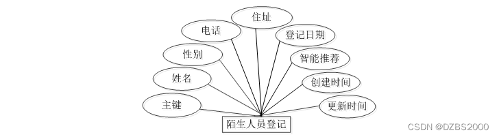 (2)表stranger_registration实体用来存陌生人员登记信息中的姓名、性别、电话、住址、登记日期等;