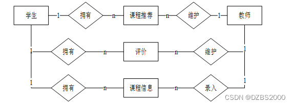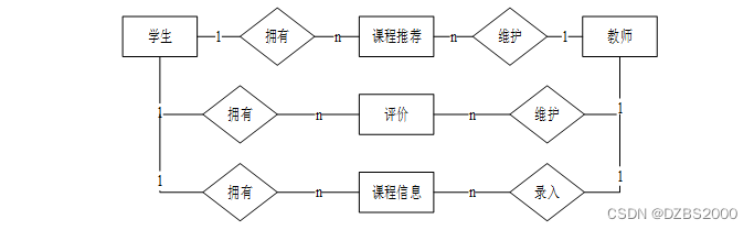 对于一个要开发的系统来说,E-R图可以让别人能更快更轻松的了解此系统的事务及它们之间的关系。根据系统分析阶段所得出的结论确定了在教务系统网站中存在着多个实体分别是用教师、管理员、课程、选课、学生。