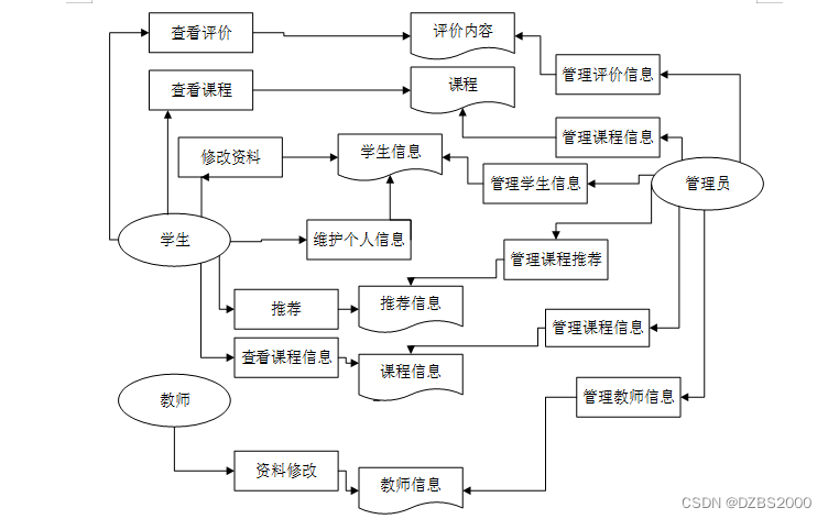 经过对系统功能的分析,调查,研究,总结出教务系统网站主要实现的是对选课信息、课程信息等管理功能。这样,可以对该系统绘制业务流程图。