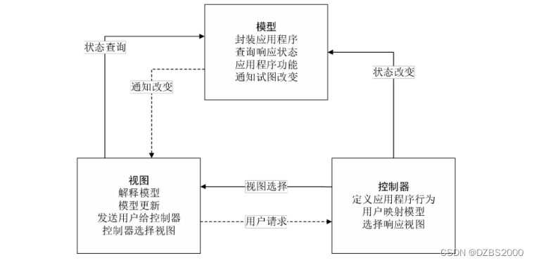 控制层主要负责视图层和模型层之间的数据传输和处理请求操作。当用户通过视图发送数据和请求时,控制层可以接收请求和数据并决定调用哪些模型、通过模型的哪些操作来处理数据和请求,处理完成后,控制层再将数据返回给相应的视图。