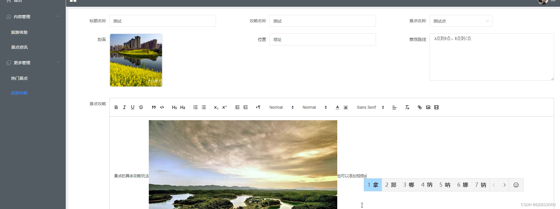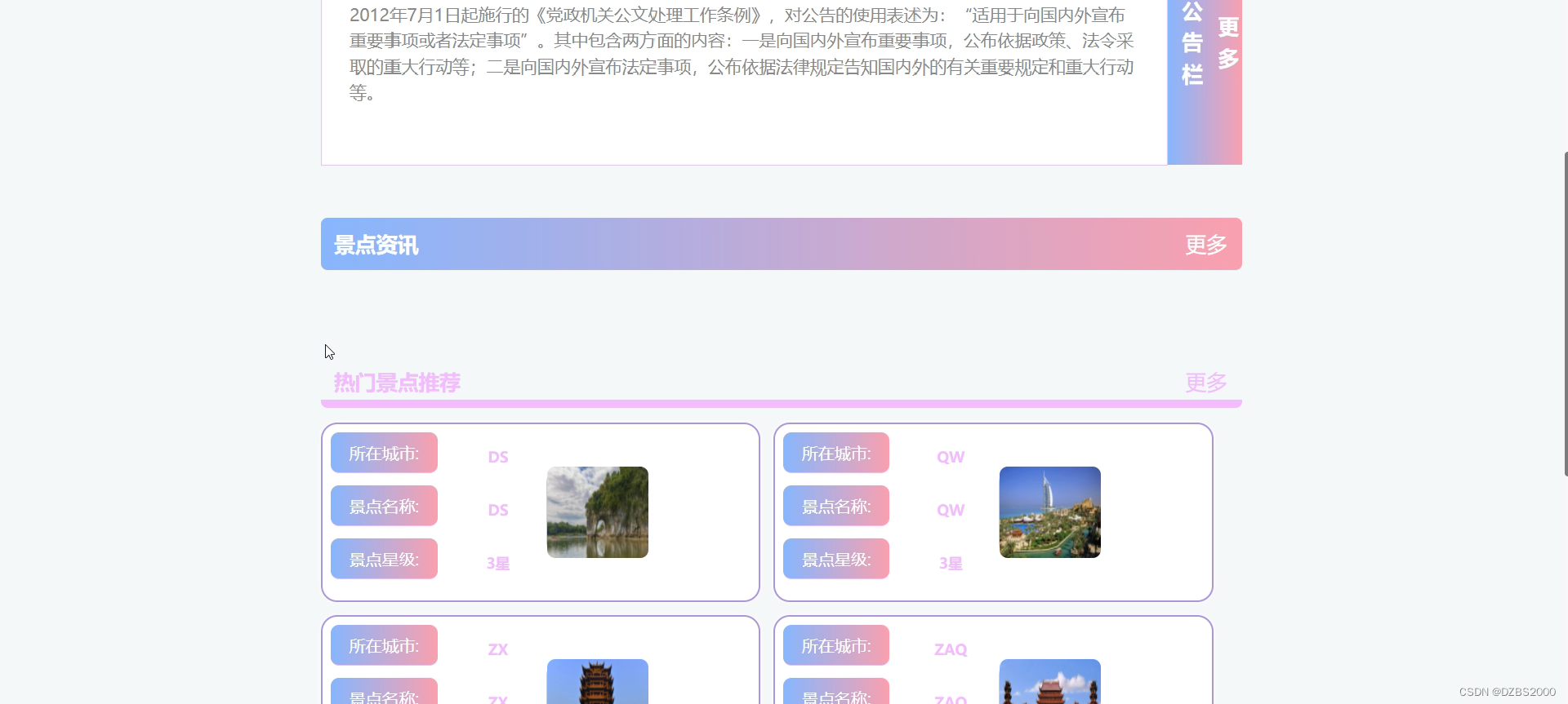 | 功能描述 | 用于景点攻略管理 | |