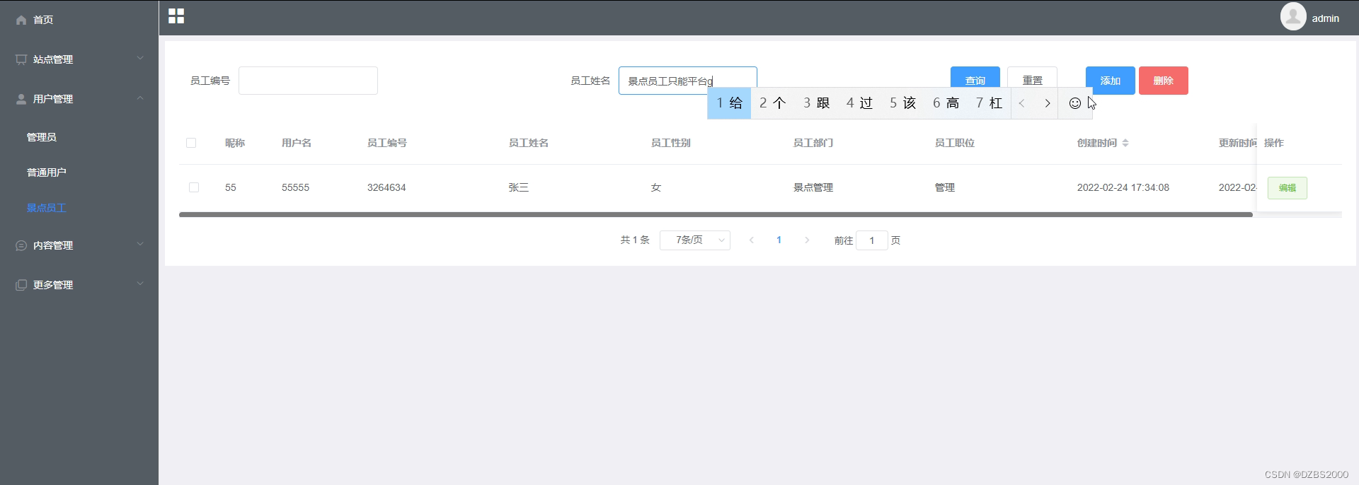 系统用户管理:管理员添加、管理、查询管理员信息并有修改他们密码的权限。