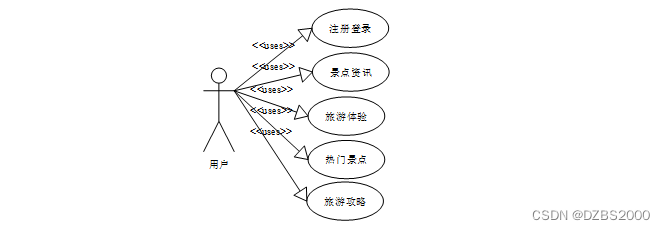 用户模块主要实现用户的注册、登录、在线意见反馈、在线评论、景点浏览、景点订票、旅游路线浏览、旅游路线查询和个人资料修改、登录密码修改、交流消息提交、购票查询、查询查询等功能。