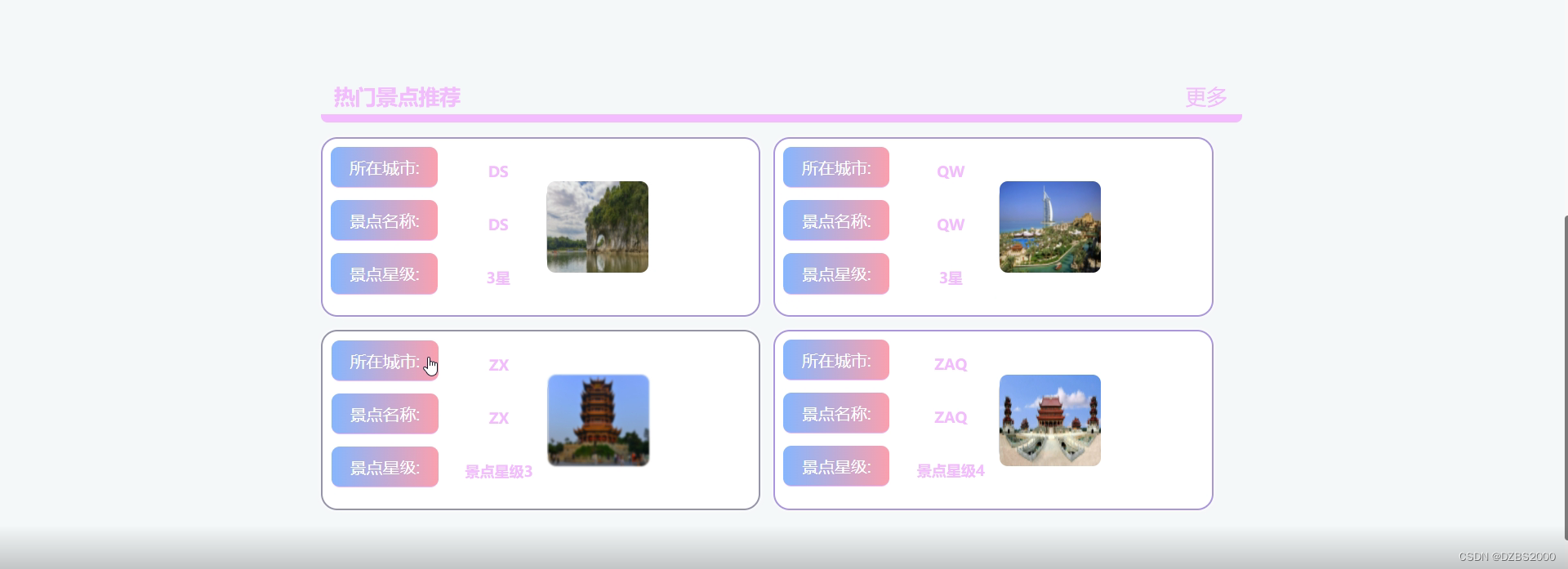 热门景点管理模块:管理员发布热门景点,并且添加热门景点数据,也能够删除热门景点数据。
