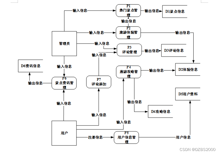 根据系统的业务流程,用户浏览所使用到的数据归纳为输出信息。而用户提交的数据则作为系统的输入数据。相应的,根据系统管理员业务流程,管理员对系统内容的添加、更新和删除等所操作的数据定义为输入信息。