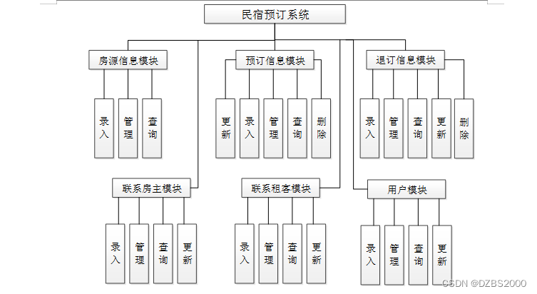 这些功能可以充分满足民宿预订系统的需求。此系统功能较为全面如下图系统功能结构如图4-5所示。