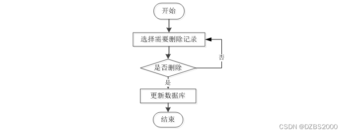 用户选择要删除的信息并单击Delete按钮。系统提示是否删除信息。如果用户想要删除信息,系统将删除信息。系统数据库删除信息。删除信息流程图如图3-5所示。
