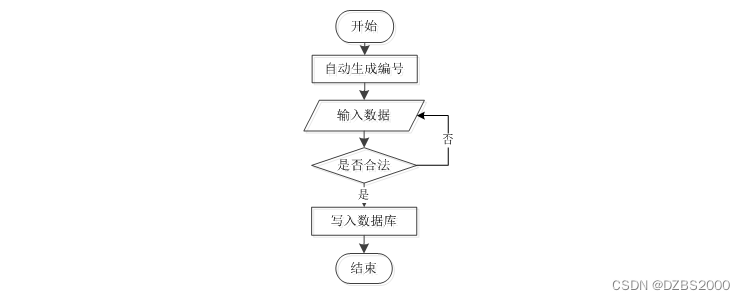添加信息,编号系统使用自动编号模式,没有用户填写,用户添加信息输入信息,系统将自动确认的信息和数据,验证的成功是有效的信息添加到数据库,信息无效,重新输入信息。添加信息流程如图3-3所示。