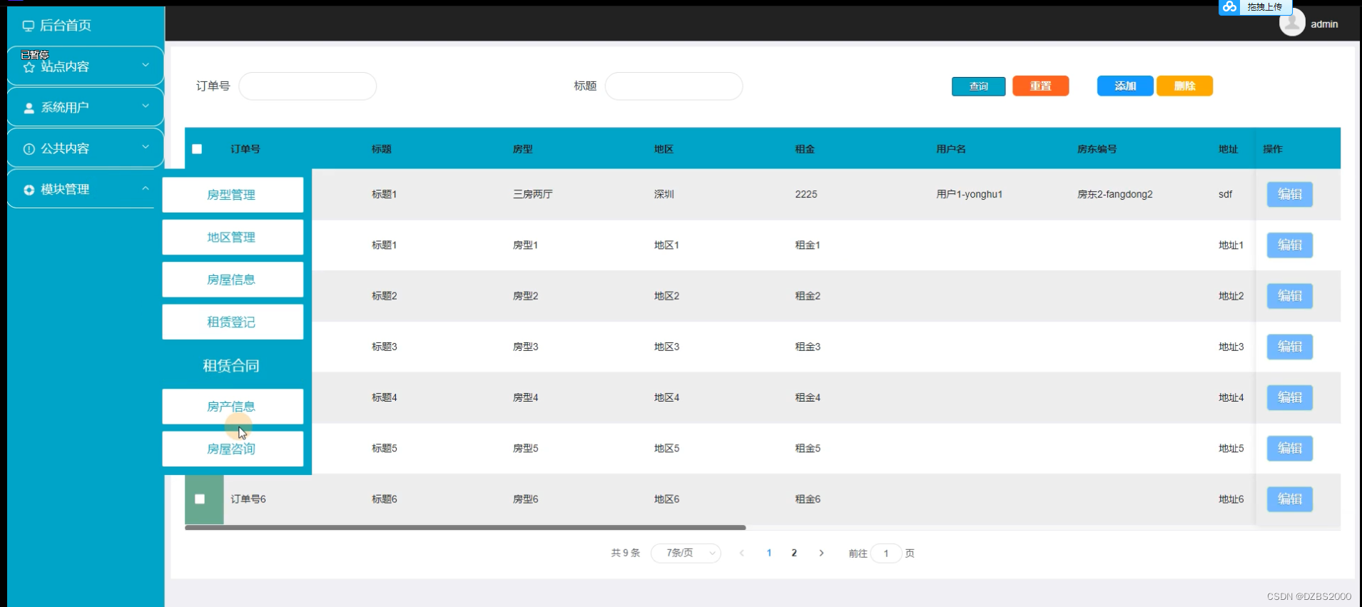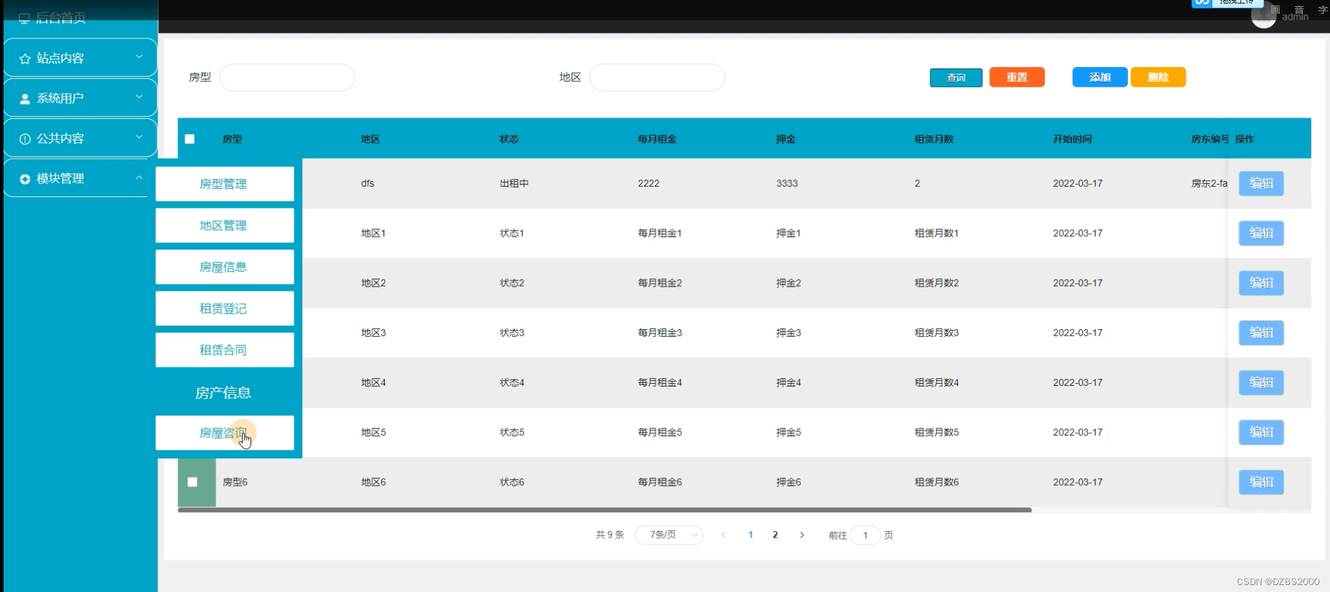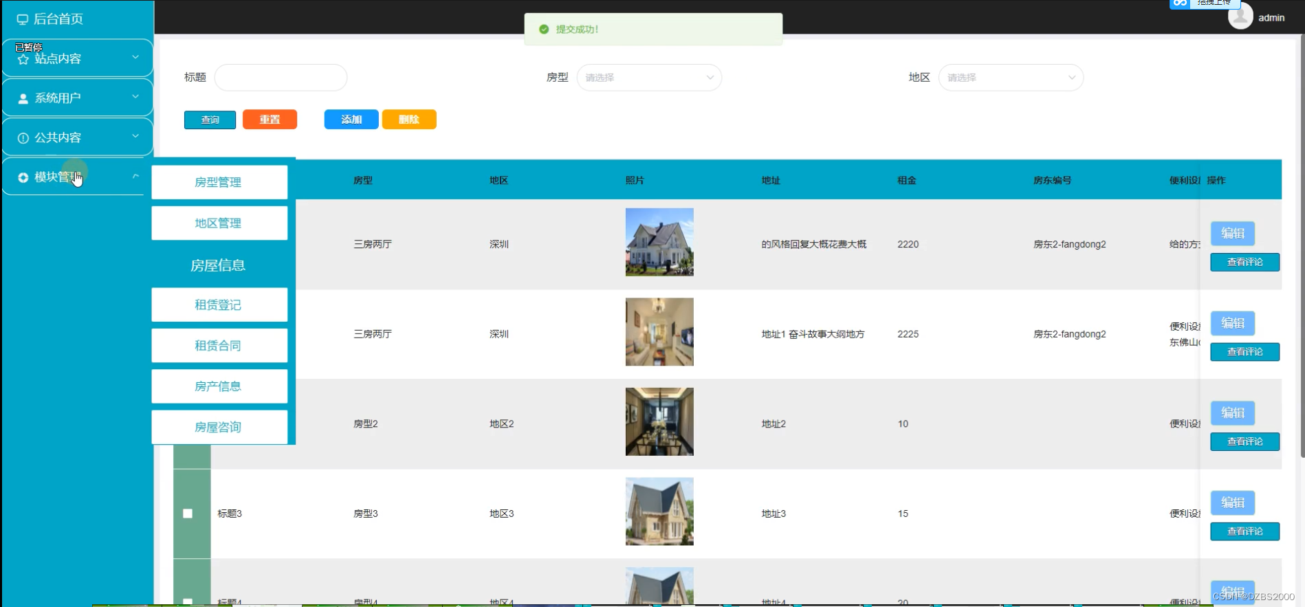 房产信息管理:对房产信息进行维护,添加、删除、修改信息。
