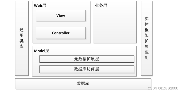 本房屋出租管理系统的架构设计主要分为可以3层,主要有Web层,业务层,Model层。其中web层还包括View层和Controller层,Model层包括元数据扩展层和数据访问层。