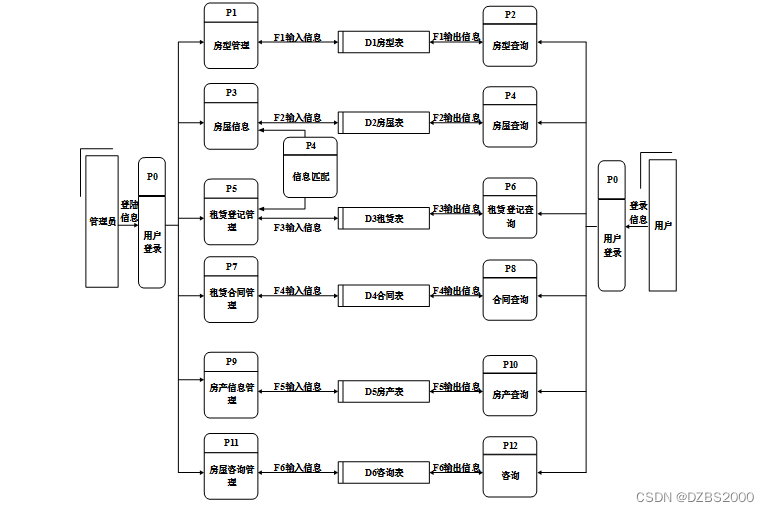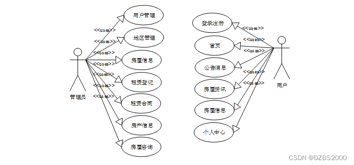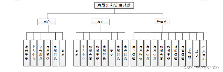 房屋出租管理系统总体分为前台用户模块和后台管理员模块。