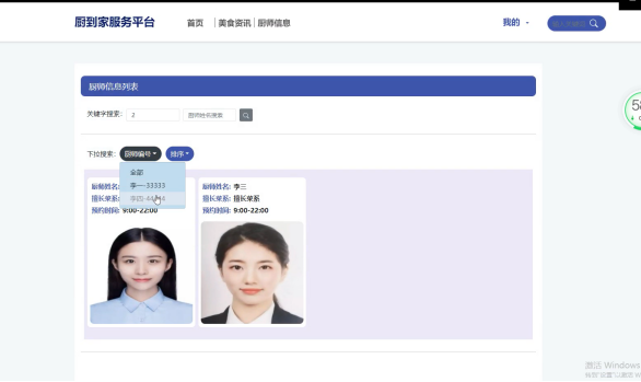 厨师信息,在厨师信息页面可以查看厨师姓名、擅长菜系、预约时间等内容,如图5-5所示。