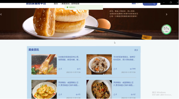 厨到家服务系统,在系统首页可以查看首页、美食资讯、厨师信息等内容,如图5-1所示。