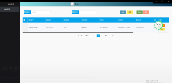 订单信息管理,在订单信息管理页面中可以查看订单编号、厨师编号、厨师姓名、性别、预约人、预约时间、预约价格、上门时间、等信息进行相对应操作,如图5-12所示。