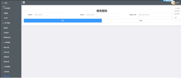 修改密码:管理员可以随时修改自己进入系统的登录密码,以保证系统的安全性。