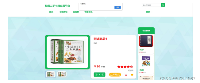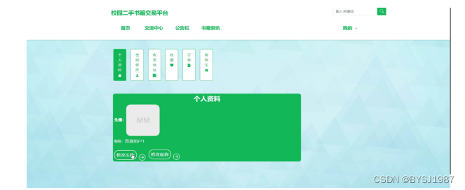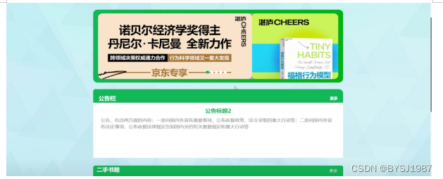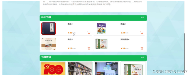 前台适用用于用户的登录、注册、二手书籍的展示和检索、书籍的购买和查看自己的订单等。