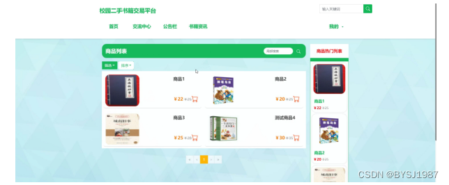- 二手书籍搜索:用户可以通过关键字或者书籍类目进行查询,尽快的找到自己喜欢的书籍。