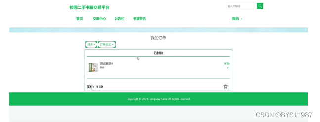- 个人订单:客户选择要购买的二手书籍,填写收货地址、收货人、联系电话,提交购买订单,然后在线付款,付款可以通过支付宝、微信或者银联等方式付款。