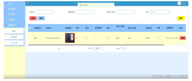 - 订单管理:订单是前台生成的,后台可以对订单的状态进行一些改变。