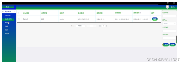 发布通知公告,并可以销毁某个通知公告,更新通知公告数据,搜索通知公告数据等。