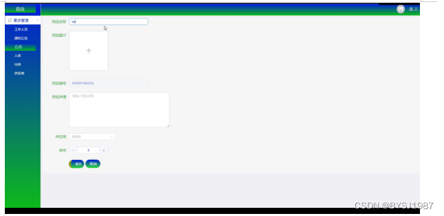 管理员填写供应商名称、供应商编号、供应商详情、提供物品、供应商地址、联系电话等提交信息如图所示。