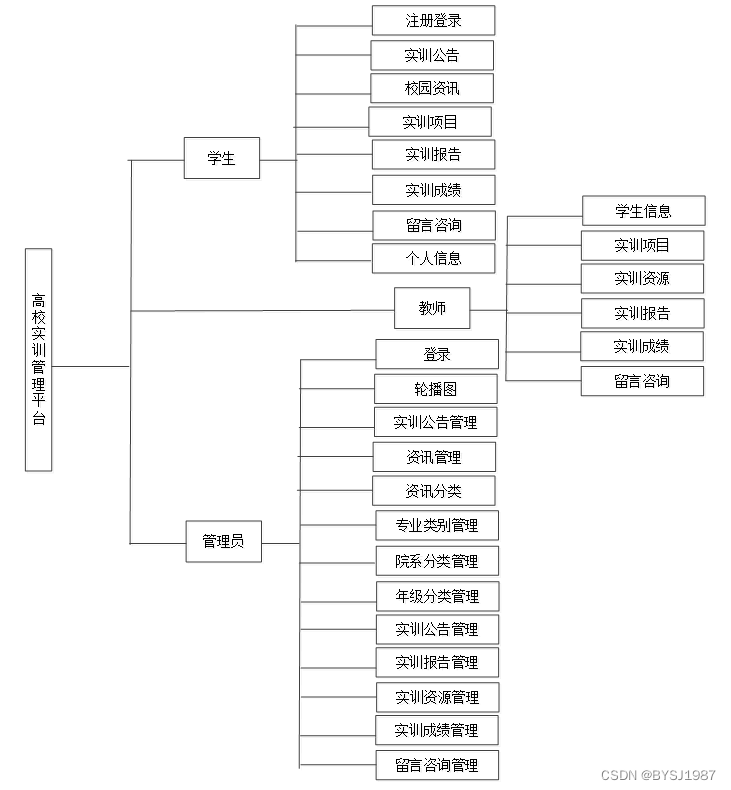 高校实训管理平台是中需要存储不少实训项目信息,其模块功能结构,具体的结构图如下: