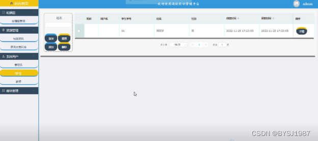 (2)用户管理:管理员可以对高校实训管理平台中的管理员,教师以及前台注册的学生用户进行增删改查。
