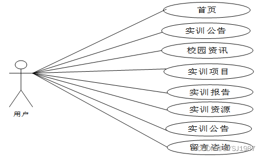 通过2.3功能的分析,得出了本高校实训管理平台的用例图: