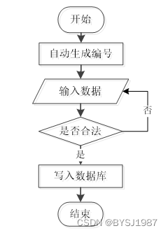 用户成功登入系统后就能够实现增加数据的操作,增加数据的编号是特定的,系统生成,用户不能随意填写,除了编号以外,其他增加信息用户自己填写,填写后的信息经过系统验证,验证合法通过就显示增加数据成功了,相反的话,就没有增加成功,图2-1显示的就是在增加数据时的流程。