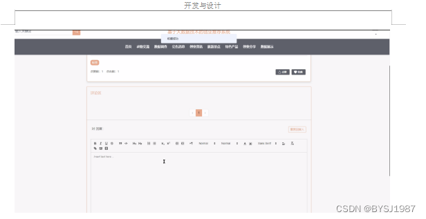 通过基于大数据技术的创业推荐系统 的开发,本人巩固了之前学过的知识,如今将平时所学到的知识融合在设计中,在设计过程中,做了很多的准备,首先,在数据库系统的设计过程中,尤其是在数据库的工作原理、工作特点,对其深刻的讨论,与此同时,对于小型站点来说,最好服务器的选择,其次,利用所学的知识点分析所做的系统,并在此基础上设计。