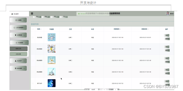 本文介绍基于大数据技术的创业推荐系统,采用Java语言、SSM技术和MySQL数据库开发。利用Python爬虫采集数据,实现轮播图、资源管理等功能模块。经测试,系统能满足用户日常需求,但仍需完善功能和性能,上线后进行了备份操作。