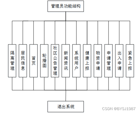 小区疫情防控系统,主要的模块包括查看首页、轮播图(轮播图管理)、社区公告管理(社区公告)、资源管理(新闻资讯、新闻分类列表)系统用户(管理员、普通用户)、模块管理(健康上报、物资申请、申请管理、出入申请、紧急上报、居民信息、隔离管理)等功能。系统中管理员主要是为了安全有效地存储和管理各类信息,还可以对系统进行管理与更新维护等操作,并且对后台有相应的操作权限。