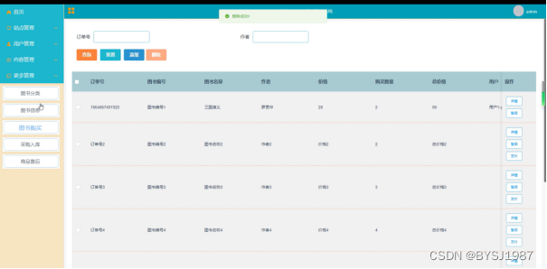 当今各式各样的网上书店管理系统相继兴起,为了使大众可以快速获得大量信息,节省精力和财力。在本系统中,实现了查看书籍详细内容,在线购买等功能。该系统具有首页、个人中心、站点管理(轮播图)用户管理(管理员、注册用户)内容管理(好书推荐、推荐分类)更多管理(图书分类、图书信息、图书购买、采购入库、商品售后)等功能。首先在该系统中用户可以通过本网站的书籍信息功能进行查看,进行全方位了解,可以毫无顾虑的进行线上自主订书,或者通过用户模块来规划自己的订书计划。其次用户注册登陆本网站后,用户可以进入个人后台来管理个人中心、留言板管理、我的收藏管理、订单管理等功能。最后在主页页面,增加了推送功能,使用户可以直接快速接触到最丰富的内容,提高了用户体验感,增加了销售量。
