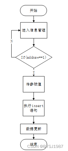 管理员可以对人员管理、车辆档案、进入记录、外出记录、车辆收费、个人管理进行信息的添加,用户可以对自己权限内的信息进行添加,输入信息后,系统会自行验证输入的信息和数据,若信息正确,会将其添加到数据库内,若信息有误,则会提示重新输入信息,添加信息流程如图3-4所示。