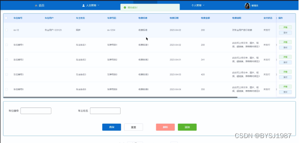 用户选择车辆收费添加支付记录,管理员审核车辆收费信息,管理所有用户的车辆收费记录。