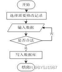 管理员可以对人员管理、车辆档案、进入记录、外出记录、车辆收费、个人管理进行的修改,用户可以对自己权限内的信息进行修改,首先进入修改信息界面,输入修改信息数据,系统进行数据的判断验证,修改信息合法则修改成功,信息更新至数据库,信息不合法则修改失败,重新输入。修改信息流程图如图3-5所示。
