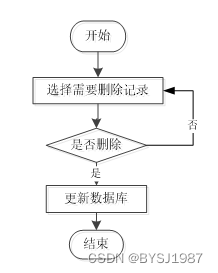 管理员可以对人员管理、车辆档案、进入记录、外出记录、车辆收费、个人管理进行信息的删除,对要删除的信息进行选中后,点击删除按钮,系统会询问是否确定,若点击确定,则系统会删除掉选中的信息,并在数据库内对信息进行删除,删除信息流程图如图3-6所示。