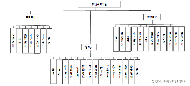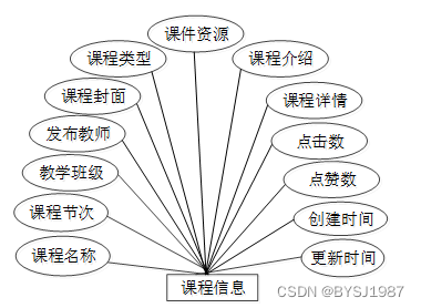 在线学习平台是中需要存储不少课程信息,其模块功能结构,具体的结构图如下: